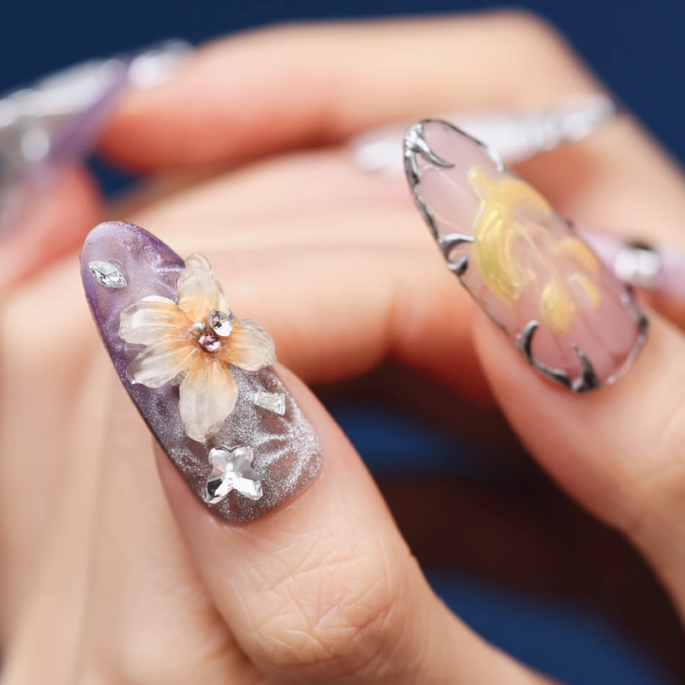 The Artisan Set features 10 meticulously handcrafted nails made by experienced nail artists. Each design is more detailed, sculptural, and elevated—ideal for those who want statement nails with a couture touch.